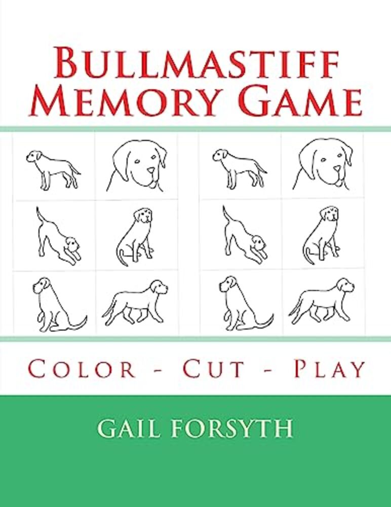 Hours of fun are in store for the child with this Bullmastiff dog memory game book. There are 60 hand drawn pictures for the child to color and then cut out. Now they can play the fun game of Memory, by themselves or with family and friends. They'll find coloring instructions, playing instructions, score sheets and a do-it-yourself Memory Card Storage Case to make, to store their Bullmastiff dog memory cards in.