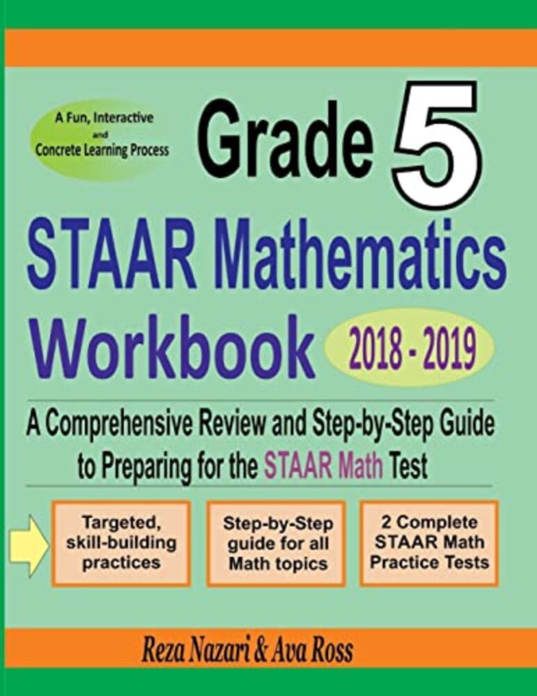 The Best Book to ACE the STAAR Math Exam! Grade 5 STAAR Mathematics Workbook is full of specific and detailed material that will be key to succeeding on the STAAR Math. It's filled with the critical math concepts a student will need in order to do well on the test. Math concepts in this book break down the topics, so the material can be quickly grasped. Examples are worked step–by–step, so you learn exactly what to do. This comprehensive Math workbook brings together everything a student needs to know for the STAAR Math section. It is designed to address the needs of STAAR test takers who must have a working knowledge of basic Math. It contains most common sample questions that are most likely to appear in the mathematics section of the STAAR. This book leaves no stones unturned! STAAR Mathematics Workbook with over 2,500 sample questions and 2 complete STAAR tests is all a student needs to fully prepare for the STAAR Math. It will help the student learns everything they need to ace the math section of the STAAR. This workbook includes practice test questions. It contains easy–to–read essential summaries that highlight the key areas of the STAAR Math test. Effortless Math test study guide reviews the most important components of the STAAR Math test. Anyone planning to take the STAAR Math test should take advantage of the review material and practice test questions contained in this study guide. Inside the pages of this comprehensive book, students can learn basic math operations in a structured manner with a complete study program to help them understand essential math skills. It also has many exciting features, including: Dynamic design and easy–to–follow activitiesStep–by–step guide for all Math topicsTargeted, skill–building practicesA fun, interactive and concrete learning processMath topics are grouped by category, so you can focus on the topics you struggle onAll solutions for the exercises are included, so you will always find the answers2 Complete STAAR Math Practice Tests that reflect the format and question types on STAAR STAAR Mathematics Workbook is the ideal prep solution for any student who wants to prepare for the STAAR test. It efficiently and effectively reinforces learning outcomes through engaging questions and repeated practice, helping students to quickly master basic Math skills. Effortless Math books have helped thousands of students prepare for standardized tests and achieve their education and career goals. This is done by setting high standards and preparing the best quality Mathematics learning books, and this book is no exception. It is the perfect study aid for the STAAR Math test. The student will definitely be well prepared for the test with this comprehensive workbook! Published by: Effortless Math Education www.EffortlessMath.com