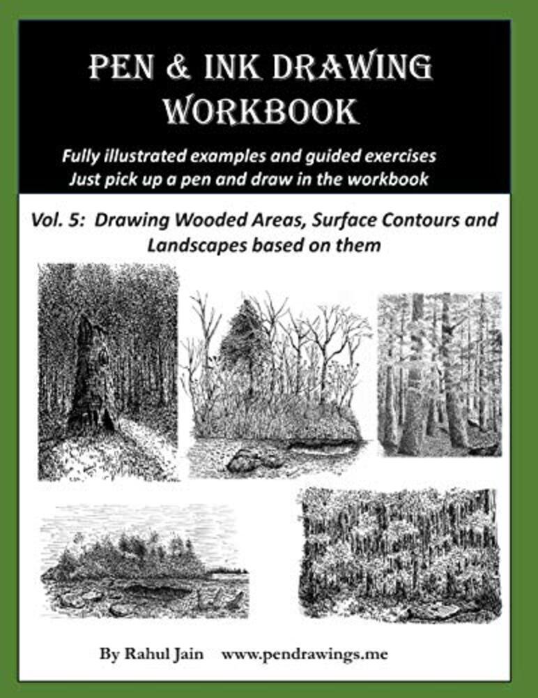 With simple pen lines, you can bring a pleasing landscape to life. This workbook will teach you how. For a quick video overview, pl. visit www.pendrawings.me/vol5 Drawing simple landscapes with pen and ink is a great way to spend your time creatively and is surprisingly easy to learn. In this workbook, accomplished pen and ink artist Rahul Jain shows you step by step how you can draw wooded areas and landscapes incorporating them with pen & ink. No prior experience or any fancy drawing pen is needed. Just pick up an ordinary gel pen and try activities in this workbook and discover how easy and fun it is to draw pleasing landscapes with pen and ink Fully illustrated examples with hands on exercises that can be done directly in the workbook. Try it today.