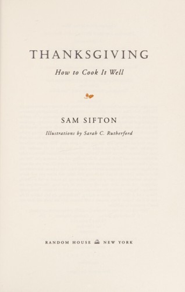 NAMED ONE OF THE BEST BOOKS OF THE YEAR BY EATER.COM From one of America's finest food writers, the founder of The New York Times Cooking section, comes a definitive, timeless guide to Thanksgiving dinner--preparing it, surviving it, and pulling it off in style. From the planning of the meal to the washing of the last plate, Thanksgiving poses more--and more vexing--problems for the home cook than any other holiday. In this smartly written, beautifully illustrated, recipe-filled book, Sam Sifton, the Times's resident Thanksgiving expert, delivers a message of great comfort and solace: There is no need for fear. You can cook a great meal on Thanksgiving. You can have a great time. With simple, fool-proof recipes for classic Thanksgiving staples, as well as new takes on old standbys, this book will show you that the fourth Thursday of November does not have to be a day of kitchen stress and family drama, of dry stuffing and sad, cratered pies. You can make a better turkey than anyone has ever served you in your life, and you can serve it with gravy that is not lumpy or bland but a salty balm, rich in flavor, that transforms all it touches. Here are recipes for exciting side dishes and robust pies and festive cocktails, instructions for setting the table and setting the mood, as well as cooking techniques and menu ideas that will serve you all year long, whenever you are throwing a big party. Written for novice and experienced cooks alike, Thanksgiving: How to Cook It Well is your guide to making Thanksgiving the best holiday of the year. It is not fantasy. If you prepare, it will happen. And this book will show you how. Advance praise for Thanksgiving "If you don't have Thanksgiving, you are not really having Thanksgiving. This book is as essential to the day as the turkey itself. It's an expert, gently opinionated guide to everything from the cranberry sauce to the table setting to the divvying up of the leftovers, but it's also a paean to the holiday and an evocation of both its past and its promising future. Sam Sifton's Thanksgiving world is the one I want to live in."--Gabrielle Hamilton, bestselling author of Blood, Bones, & Butter "The charm of Sam Sifton's Thanksgiving is that he proposes that home cooks treat this culinary Olympics like any other dinner party--don't panic, deconstruct your tasks into bite-size pieces, and conquer that fear of failure. Sam could talk a fledgling doctor through his first open-heart surgery. It's all here--from brining to spatchcocking, sides to desserts--and served up with a generous dollop of reassuring advice from one of America's most notable food writers."--Christopher Kimball, editor of Cook's Illustrated and host of America's Test Kitchen
