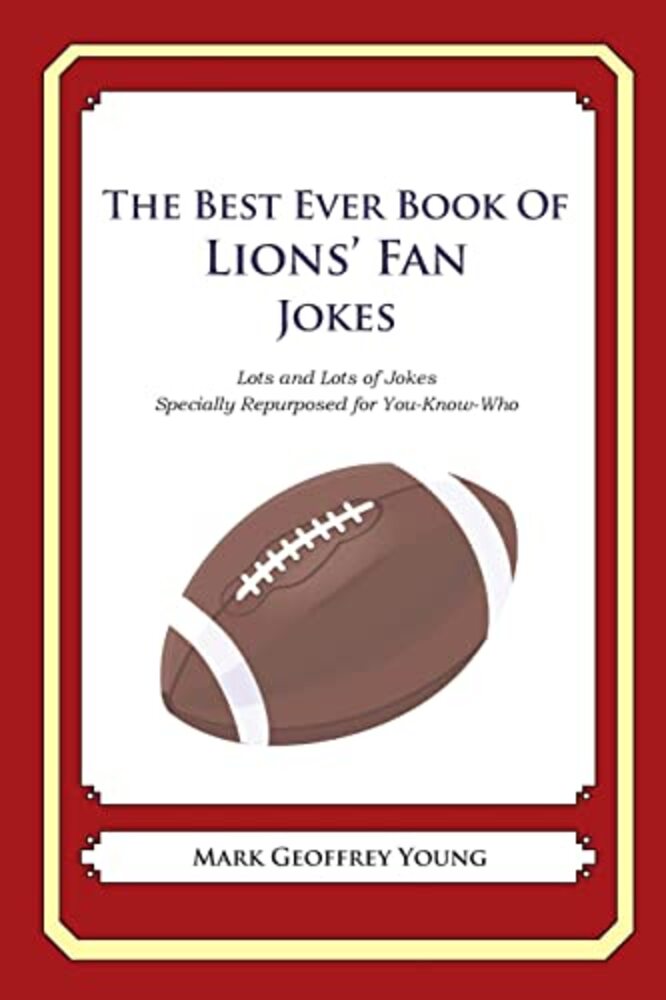 If you've ever heard a Jewish, Italian, Irish, Libyan, Catholic, Mexican, Norwegian, or an Essex Girl, Newfie, Mother-in-Law, or joke aimed at a minority, this book of Lions' Fan jokes is for you. In this not-so-original book, The Best Ever Book of Lions' Fan Jokes; Lots and Lots of Jokes Specially Repurposed for You-Know-Who, Mark Young takes a whole lot of tired, worn out jokes and makes them funny again. The Best Ever Book of Lions' Fan Jokes is so unoriginal, it's original. And, if you don't burst out laughing from at least one Lions' Fan joke in this book, there's something wrong with you. This book has so many Lions' Fan jokes, you won't know where to start. For example: Why do Lions' Fans wear slip-on shoes? You need an IQ of at least 4 to tie a shoelace. *** An evil genie captured a Lions' Fan and her two friends and banished them to the desert for a week. The genie allowed each person to bring one thing. The first friend brought a canteen so he wouldn't die of thirst. The second friend brought an umbrella to keep the sun off. The Lions' Fan brought a car door, because if it got too hot she could just roll down the window! *** Did you hear about the Lions' Fan who wore two jackets when she painted the house? The instructions on the can said: "Put on two coats." *** Why do Lions' Fans laugh three times when they hear a joke? Once when it is told, once when it is explained to them, and once when they understand it. ***