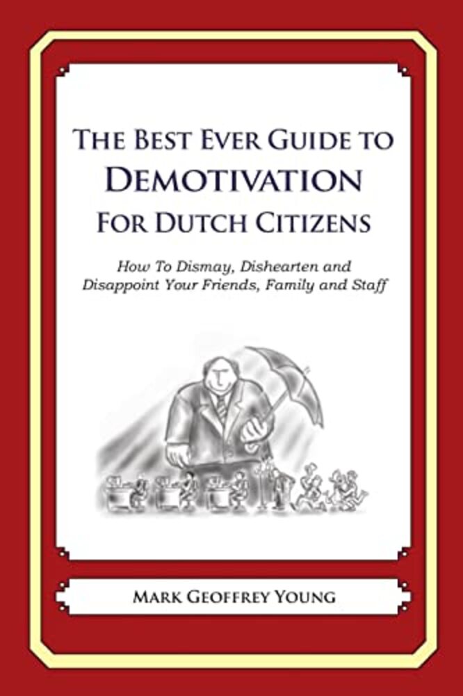 If you're looking to gain respect from your employees, increase your income and get more out of your friends, for you, The Best Ever Guide to Demotivation for Dutch Citizens is the book you're looking for. While The Best Ever Guide to Demotivation for Dental Dutch Citizens appears to be parody of motivational books, many employers have used this book to get their employees to work harder and increase their standing in the community. Rather than showing you ways to motivate your employees so they'll want to work harder, this book show you how to use fear and intimidation to MAKE them work harder, and ensure that your friends give you the respect you think you deserve. Some of the ways you can use demotivation to get what you want include: *** Every Dutch Citizen knows that meetings are a complete waste of time. Make yourself more efficient by turning up at every meeting fifteen minutes late, leaving early, and popping in and out while it's in progress. *** Maintain the distance between yourself, the Dutch Citizen, and your friends by never smiling or saying hello to anybody. While this may appear rude, it's better than having to deal with their problems. *** Nobody gets a better deal at restaurants than Dutch Citizens. Before dividing up the bill, calculate your share and work out if it's cheaper to split the bill evenly, or for everybody to pay their own share. Do this every time to save the maximum amount possible. *** Install phones in every bathroom stall and above the urinals so your employees can continue working while they do their business. ***