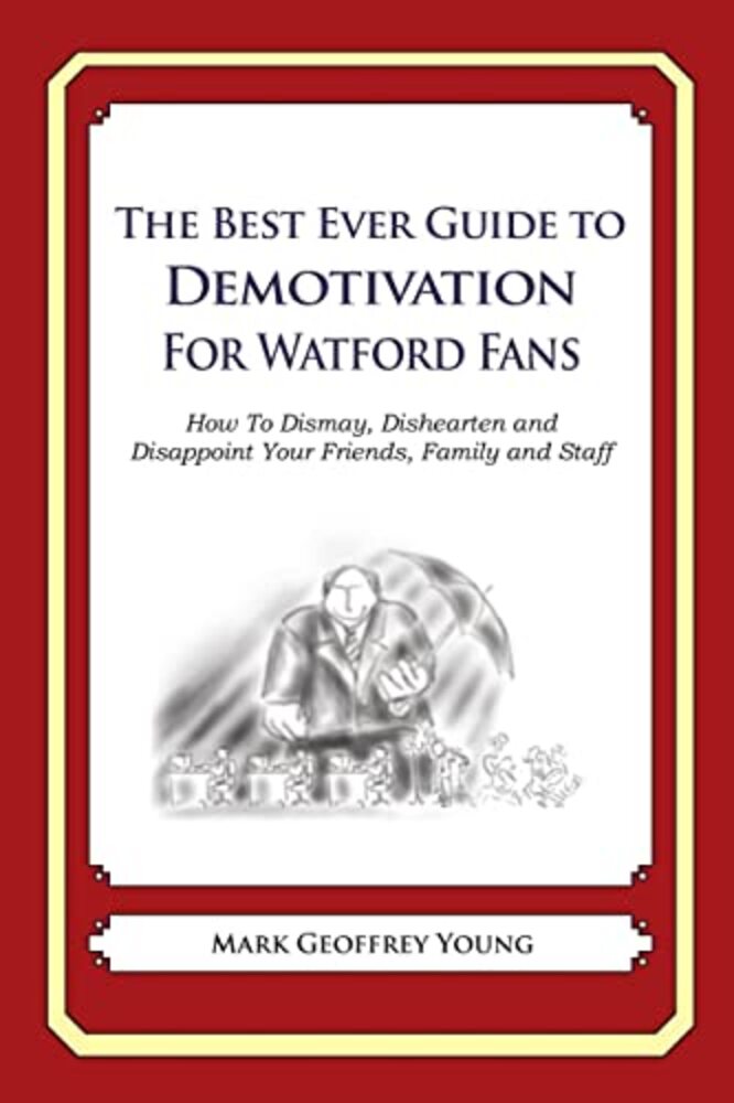 If you're looking to gain respect from your employees, increase your income and get more out of your friends, for you, The Best Ever Guide to Demotivation for Watford Fans is the book you're looking for. While The Best Ever Guide to Demotivation for Watford Fans appears to be parody of motivational books, many employers have used this book to get their employees to work harder and increase their standing in the community. Rather than showing you ways to motivate your employees so they'll want to work harder, this book show you how to use fear and intimidation to MAKE them work harder, and ensure that your friends give you the respect you think you deserve. Some of the ways you can use demotivation to get what you want include: *** Every Watford Fan knows that meetings are a complete waste of time. Make yourself more efficient by turning up at every meeting fifteen minutes late, leaving early, and popping in and out while it's in progress. *** Maintain the distance between yourself, the Watford Fan, and your friends by never smiling or saying hello to anybody. While this may appear rude, it's better than having to deal with their problems. *** Nobody gets a better deal at restaurants than Watford Fans. Before dividing up the bill, calculate your share and work out if it's cheaper to split the bill evenly, or for everybody to pay their own share. Do this every time to save the maximum amount possible. *** Install phones in every bathroom stall and above the urinals so your employees can continue working while they do their business. ***