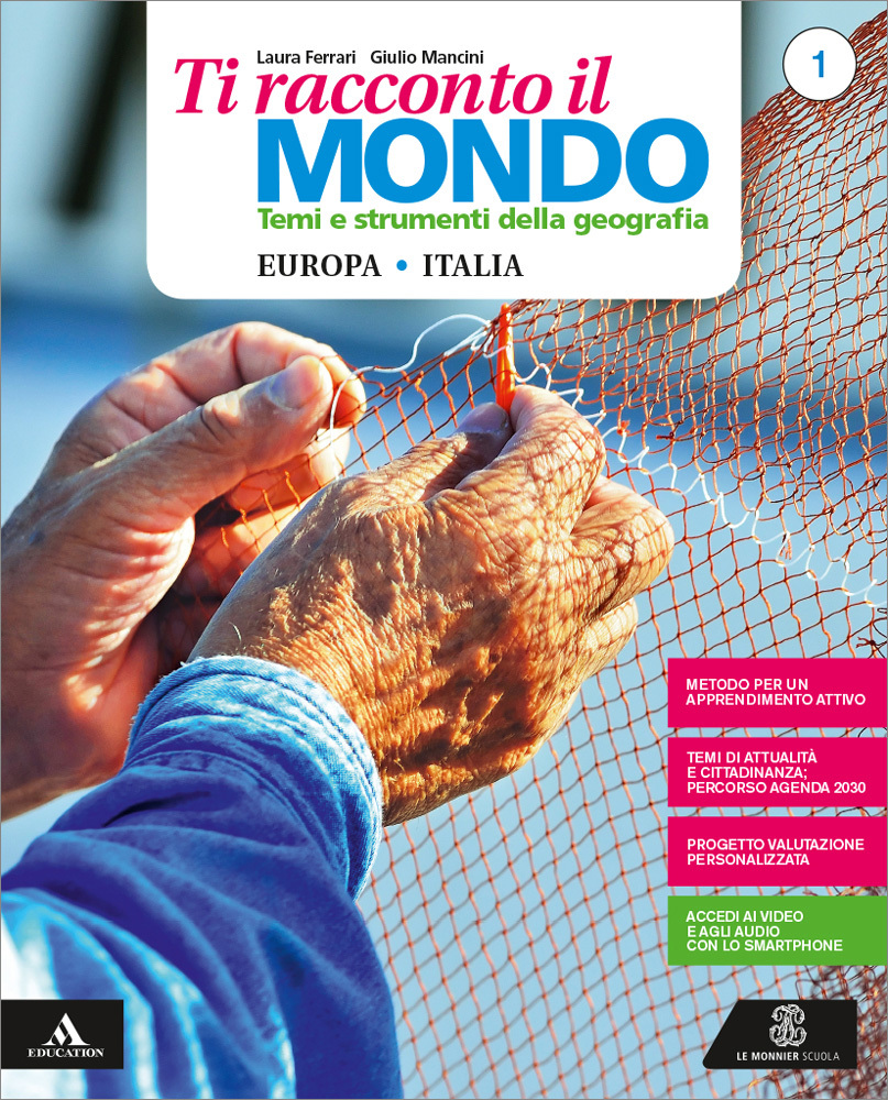 Ti racconto il mondo è un corso di Geografia operativo e ricco di strumenti per coinvolgere gli studenti e avvicinarli ai temi dello sviluppo sostenibile e della Cittadinanza attiva. Il progetto didattico è basato sul metodo dell’imparare facendo, che rende il testo accessibile e inclusivo. Una attenzione costante è rivolta anche alla comprensione e all’uso del lessico della disciplina. Molto ricco è il panorama delle rubriche di approfondimento: Attualità, su temi di ambiente e Cittadinanza; Ti racconto, con narrazioni su paesaggi italiani o stranieri; Avventure nel mondo, con informazioni curiose e accattivanti su alcuni Paesi. Un percorso graduale è riservato all’Agenda 2030, con casi emblematici e dossier tematici. Tutte le proposte didattiche e le verifiche favoriscono un lavoro costante sulle competenze della disciplina, sia disciplinari sia digitali. Alcune proposte di approfondimento sono in lingua inglese per il CLIL. Per garantire una didattica inclusiva il corso offre numerosi strumenti, come i percorsi per Bisogni Educativi Speciali (con sintesi, cartografia semplificata, confronti per immagini) e le mappe concettuali. Per la valutazione formativa sono proposte verifiche apposite (con strategie di metodo e autovalutazione, nei volumi), schede per l’apprendimento personalizzato e schede per l’eccellenza (nei Quaderni).