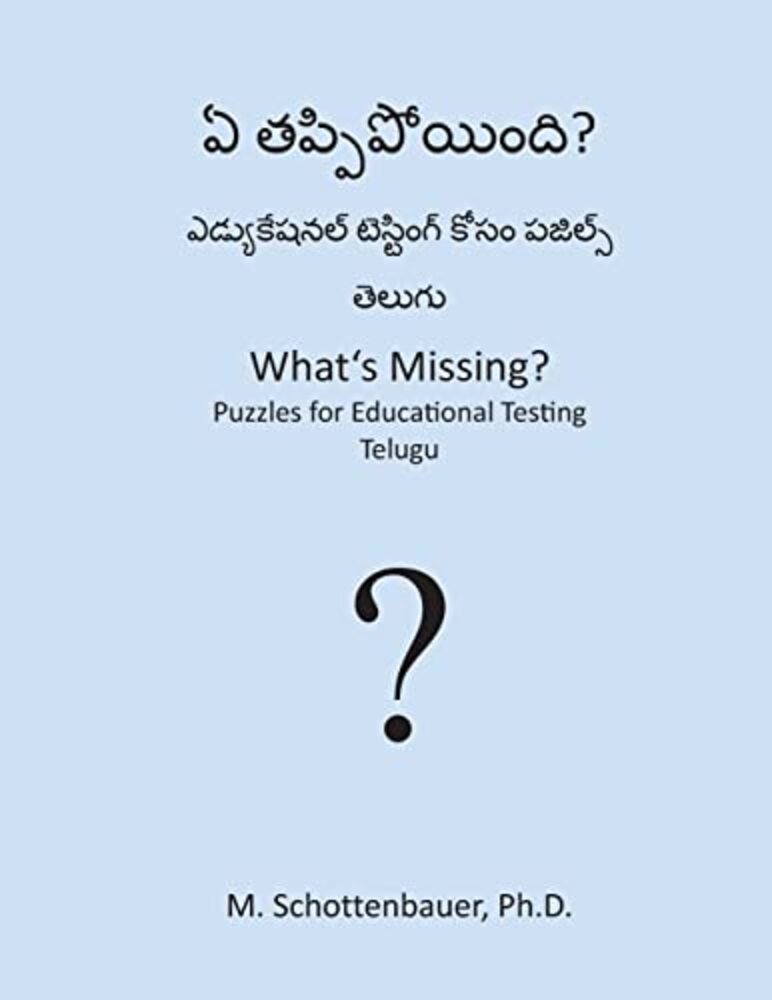 What's Missing? Puzzles for Educational Testing This series of "What's Missing?" presents new puzzles of graduated difficulty (easy to difficult) for educational settings. This book series can be used to screen for literacy, visual-spatial skills, simultaneous processing, gestalt perception, memory, and other cognitive skills among children, youth, and adults. Each book in this series presents the same puzzles in a different language, for comparison of language competency and cognitive skills across languages. (Note: At the time of publication, normalization data was not available.) What's Missing Puzzle Series: Books and Posters in over 60 Languages www.sites.google.com/site/schottenbauerpublishing/ Afrikaans, Albanian, Arabic, Armenian, Azerbaijani, Basque, Belarusian, Bengali, Bulgarian, Catalan, Cebuano, Chinese, Croatian, Czech, Danish, Dutch, English, Estonian, Filipino, Finnish, French, Galacian, Georgian, German, Greek, Gujarati, Haitian, Hebrew, Hindi, Hmong, Hungarian, Icelandic, Indonesian, Italian, Japanese, Javanese, Kannada, Khmer, Korean, Lao, Latvian, Lithuanian, Macedonian, Malay, Maltese, Marathi, Norwegian, Persian, Polish, Portuguese, Romanian, Russian, Serbian, Slovak, Slovenian, Spanish, Swahili, Swedish, Tamil, Telugu, Thai, Turkish, Ukrainian, Urdu, Vietnamese, Yiddish