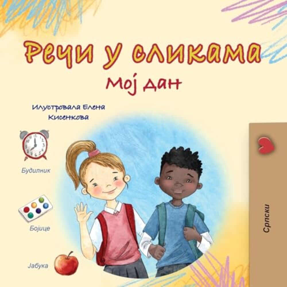 Greek children's book. This is a fun and colorful book for kids ages 3-5. Each page shows a part of a child's day, like waking up, eating breakfast, or playing with friends. Important words, like "toothbrush," "apple," and "blanket," are shown in the pictures and also separately illustrated. This helps kids learn to recognize and read the words while exploring their world. With bright illustrations and simple words, this book makes learning fun and easy!